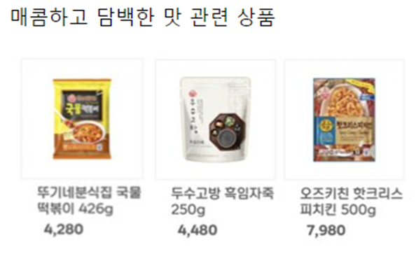 (2) 유저가 특정 상품을 클릭하여 상품 상세 페이지에 들어갔을 때, 페이지 측면 또는 하단에 연관 상품을 추천합니다. 이때 유저의 음식 취향 데이터를 학습한 AI가 유저의 입맛 취향에 따라 연관 상품을 추천합니다.
